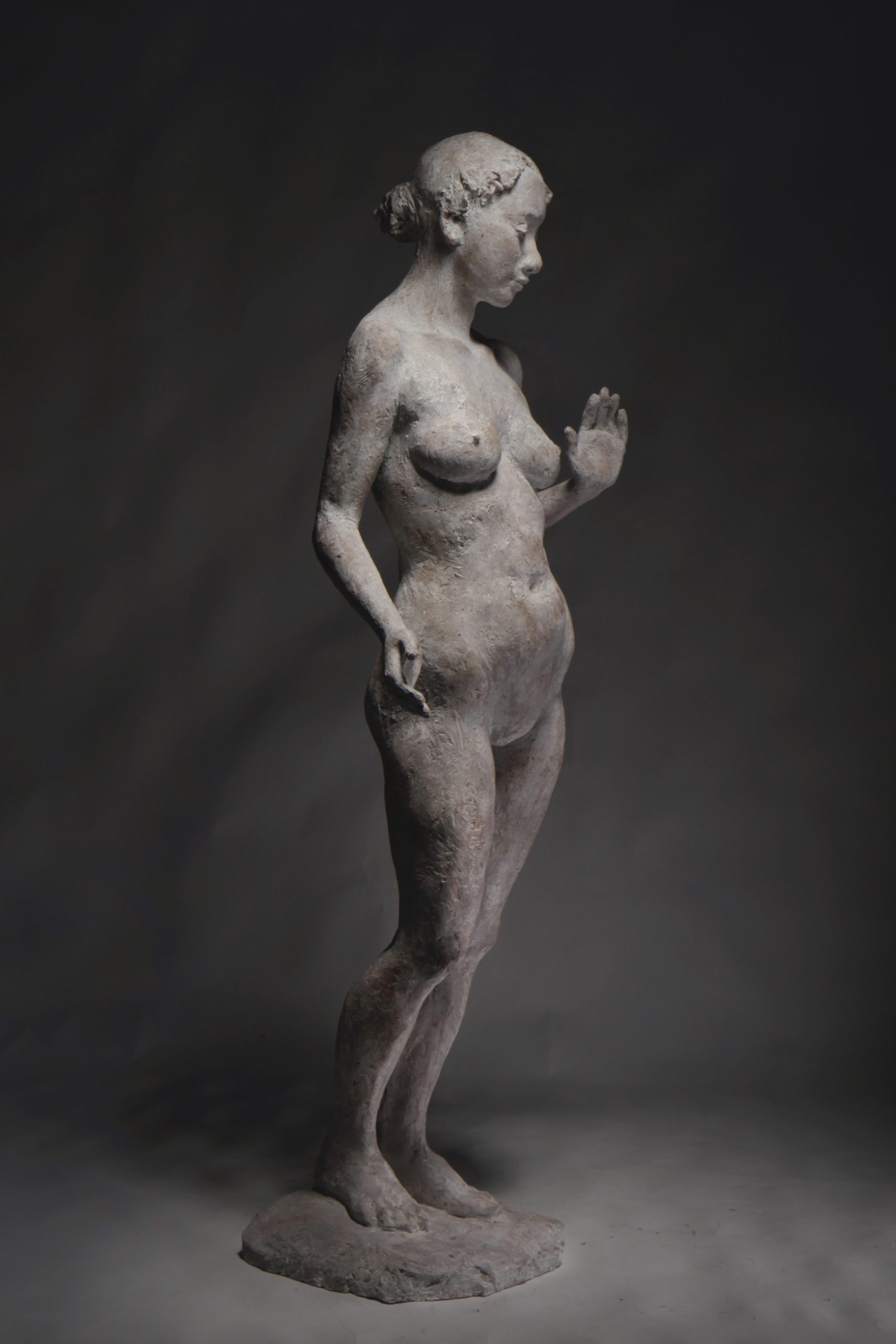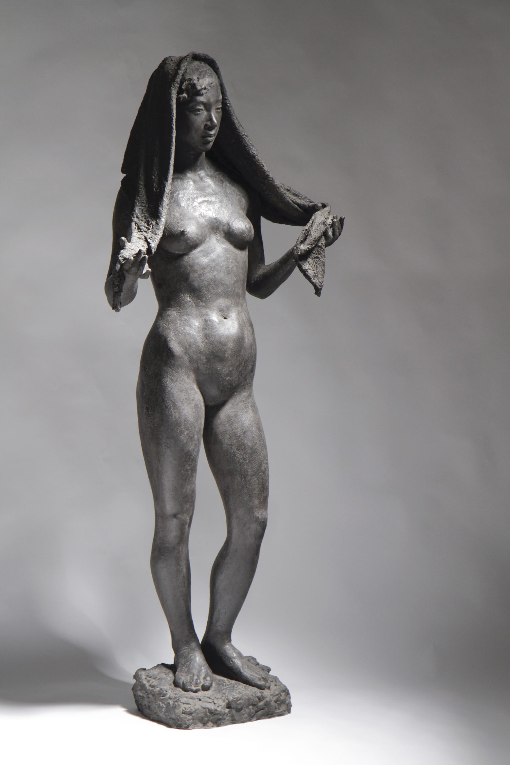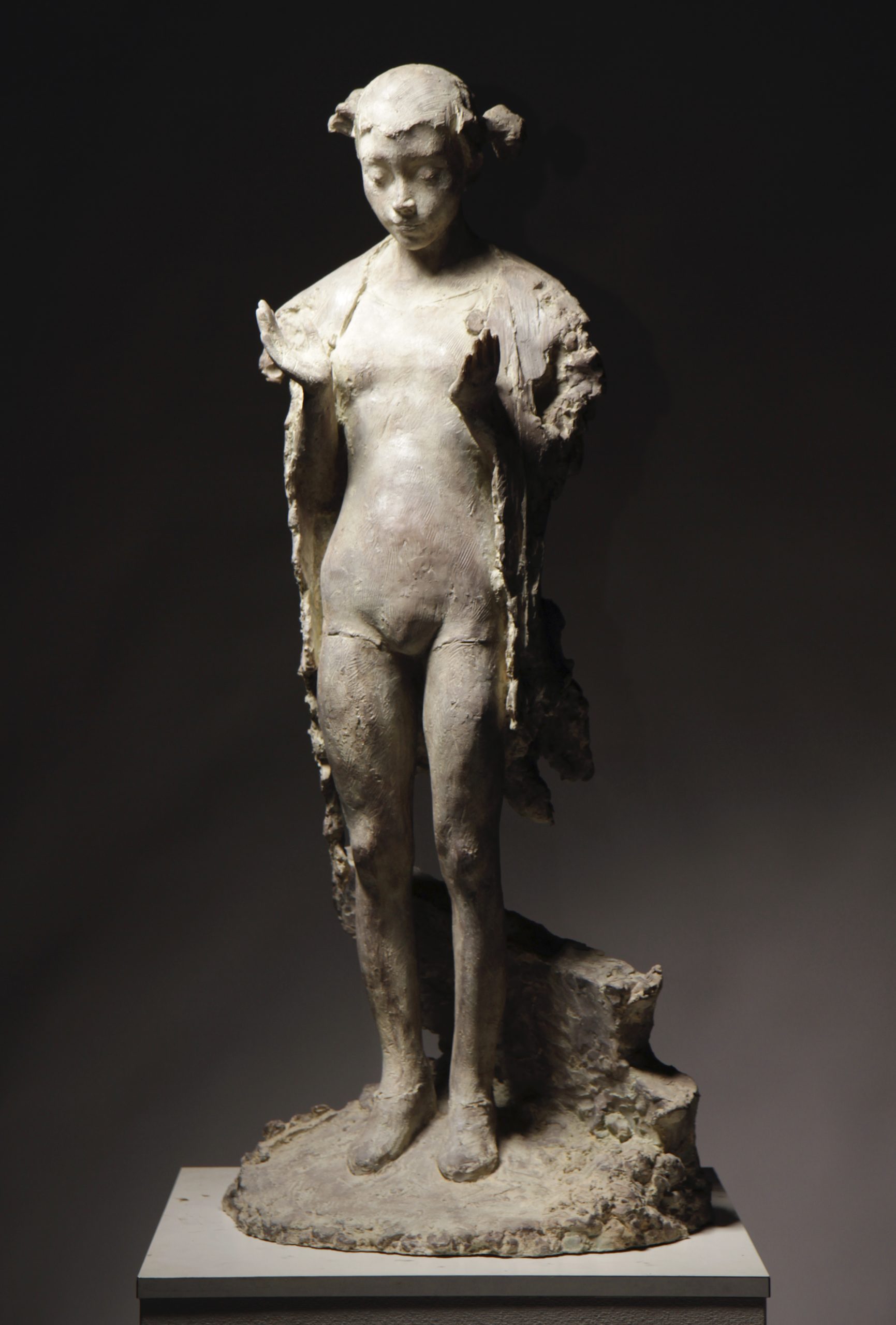Kayoko Kusumoto, born in 1954 in the former Kokubu City (now Kirishima City), Japan, is a master sculptor whose practice spans life-size and monumental figures, rendered with a profound spiritual resonance and formal elegance. After graduating from Kagoshima University in 1976, she studied under the celebrated sculptor Shinya Nakamura, whose influence is evident in the poised serenity and psychological depth of her work. Her sculptures, whether solitary or in groups are marked by meditative stillness, anatomical precision, and a quiet gravity that draws the viewer inward. Over the decades, Kusumoto has established herself as a leading figure in contemporary Japanese sculpture. Her work has been featured extensively in Japan’s foremost art platforms, including the Nitten, the nation’s premier fine art exhibition and the Hakujitsukai Exhibition, where she has become a regular and distinguished presence. Kusumoto is Professor Emeritus at Sojo University in Kumamoto, where she mentored generations of young artists. She currently serves as the Director of the Kagoshima City Museum of Art, continuing her commitment to the cultivation of public art and education. A member of both the Nitten Exhibition and the Japan Sculpture Society, she remains an active and influential presence in Japan’s cultural sphere. Her sculptures are objects of contemplation, vessels of presence, stillness, and inner light.