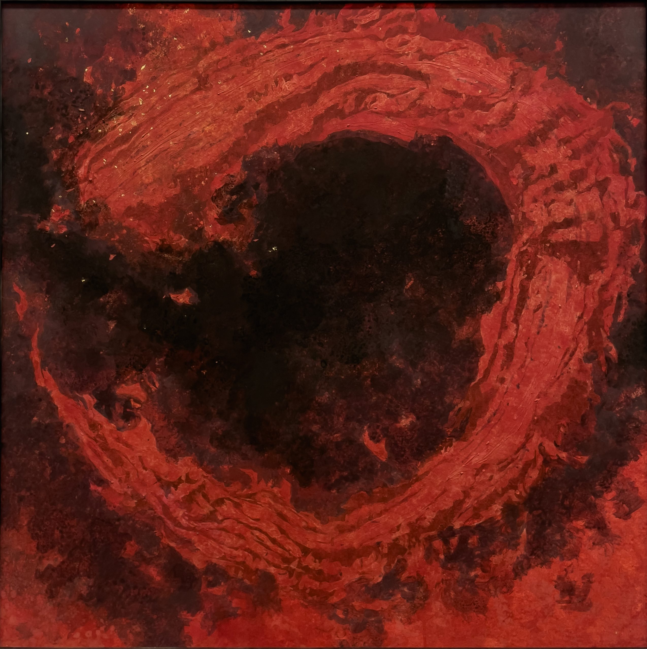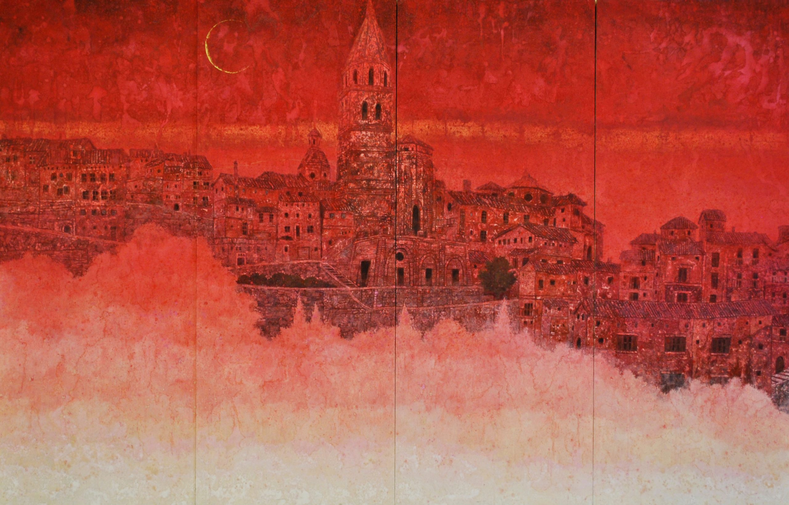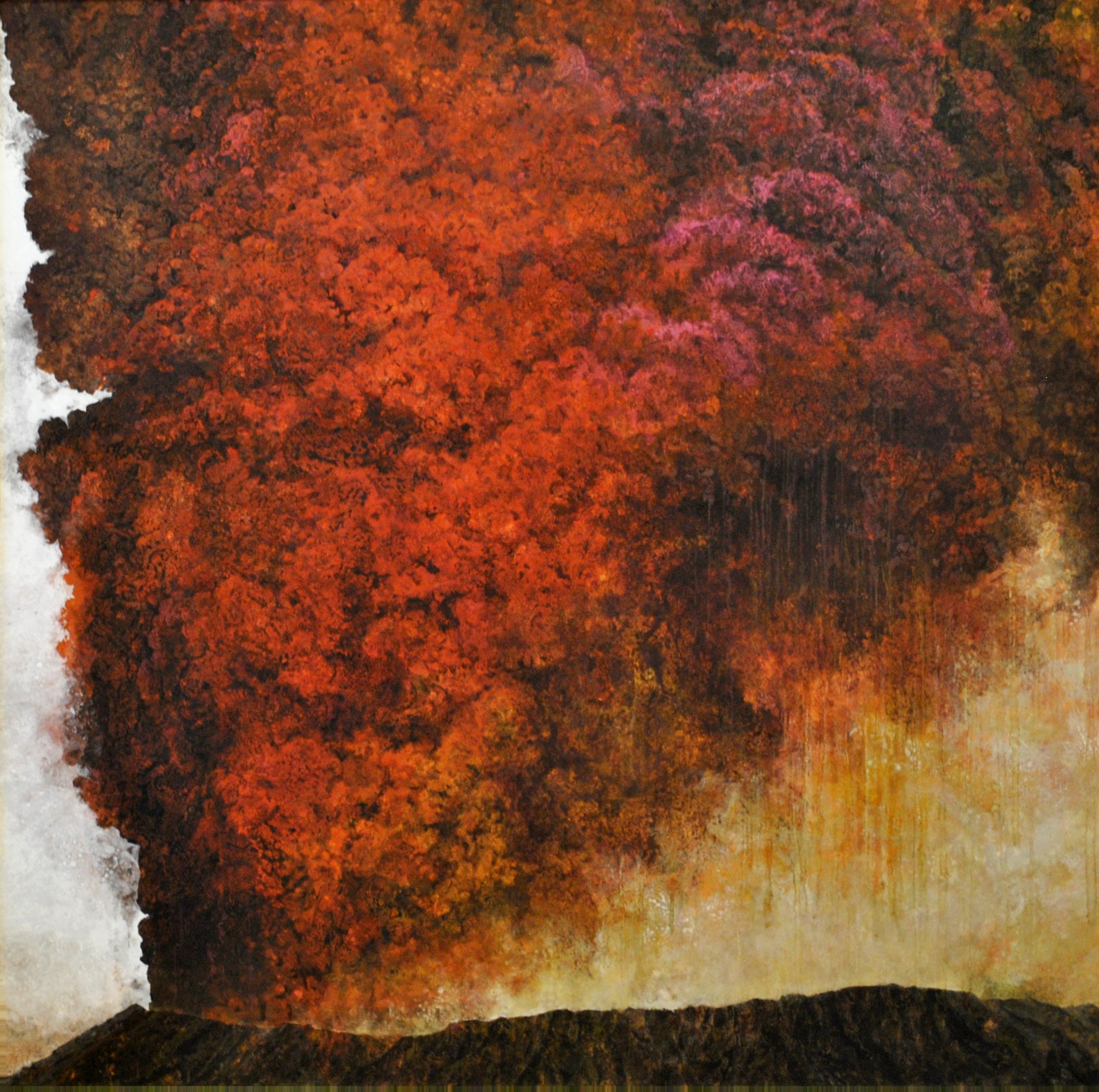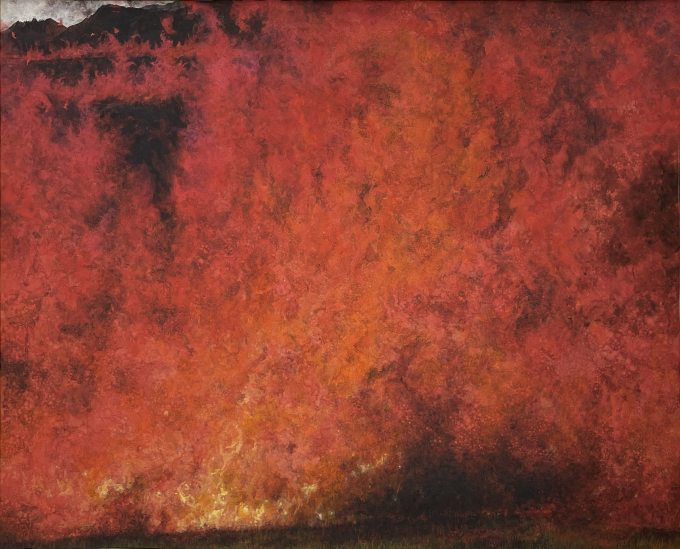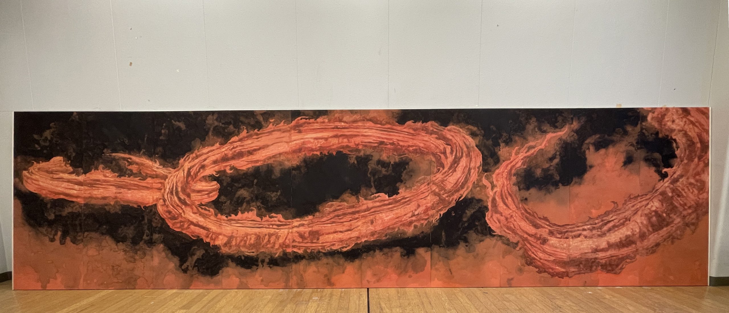 Kenji Nakamura’s paintings offer a paradox: they are made of some of the most enduring materials in Japanese art, mineral pigments, gold leaf, yet what they capture is the fleeting, the vanished, the almost-forgotten. Trained in classical Nihonga yet shaped by his life in Kumamoto’s shifting natural landscape, Nakamura paints not to preserve but to trace time as it passes through form. His flowers do not bloom in fullness but tilt in suspension; his landscapes do not declare themselves, they withhold. The result is a body of work that explores how material permanence can be used to hold impermanence. His use of gold is particularly striking—not luminous or triumphant, but subdued, almost muted, as if tarnished by memory. In this tension between lasting surface and ephemeral subject, Nakamura positions painting as an act of quiet resistance to erasure. This idea reaches full expression in his responses to the 2016 Mount Aso eruption. Rather than depicting disaster, he renders the space left behind: scorched petals, disrupted soil, the fragile return of silence. These works hold no climax, no narrative closure. Instead, they dwell in the aftermath. Here, materiality becomes both burden and offering. The pigments remember what the landscape cannot say. As viewers, we are not asked to interpret but to remain—to sit with the slow aftermath of events, and to consider the weight that fragile things can carry. In this way, Nakamura’s paintings ask a subtle but profound question: how do we hold onto what time insists on letting go?