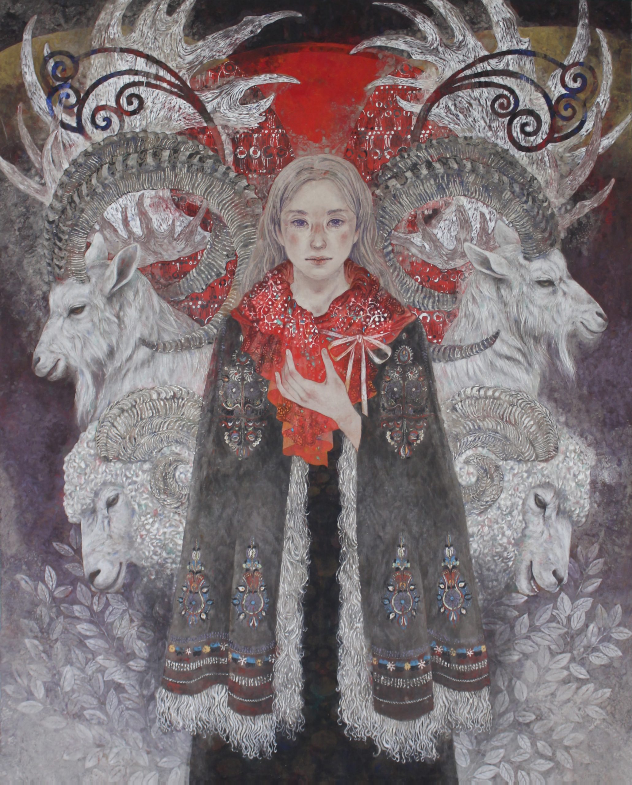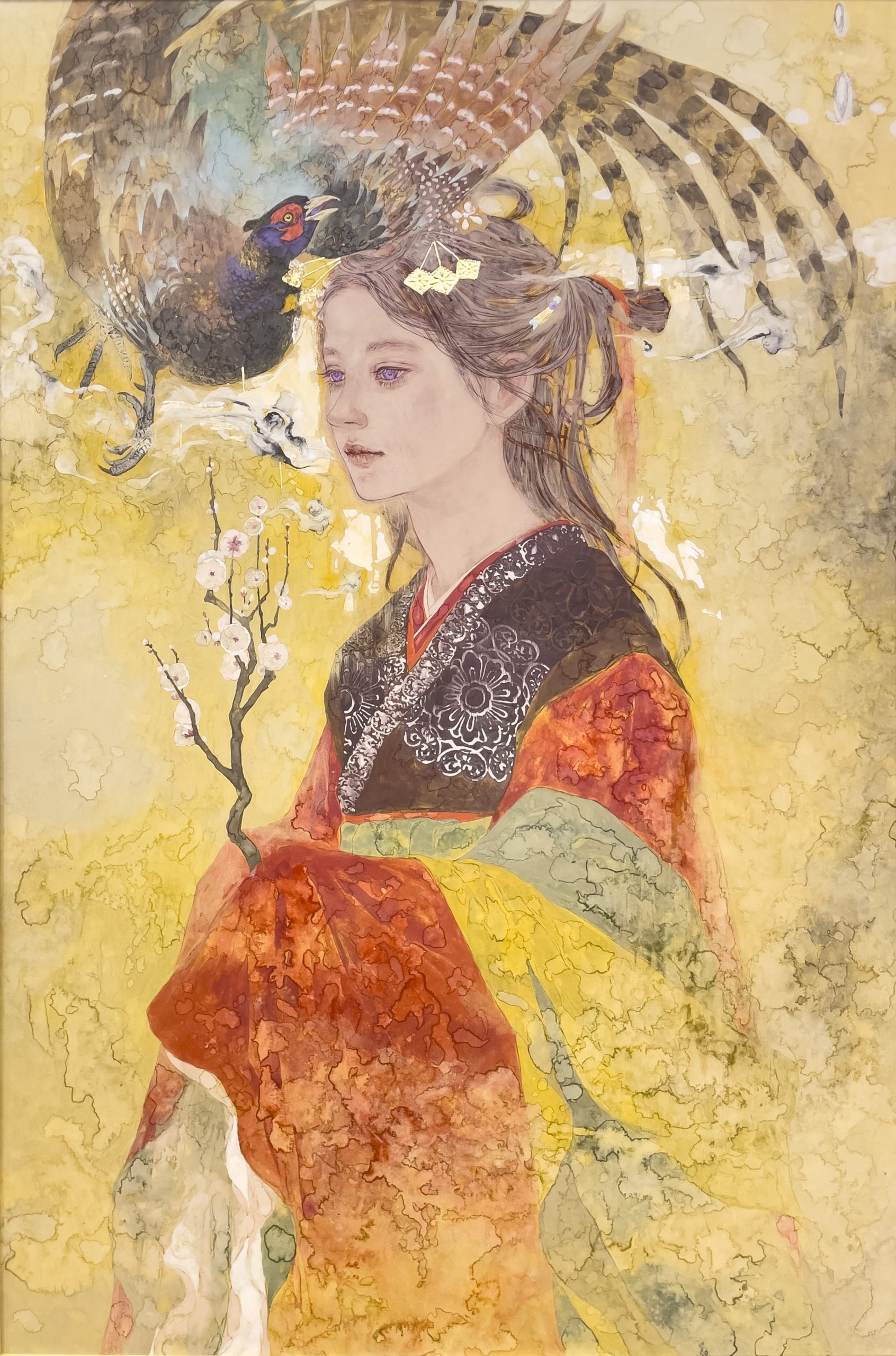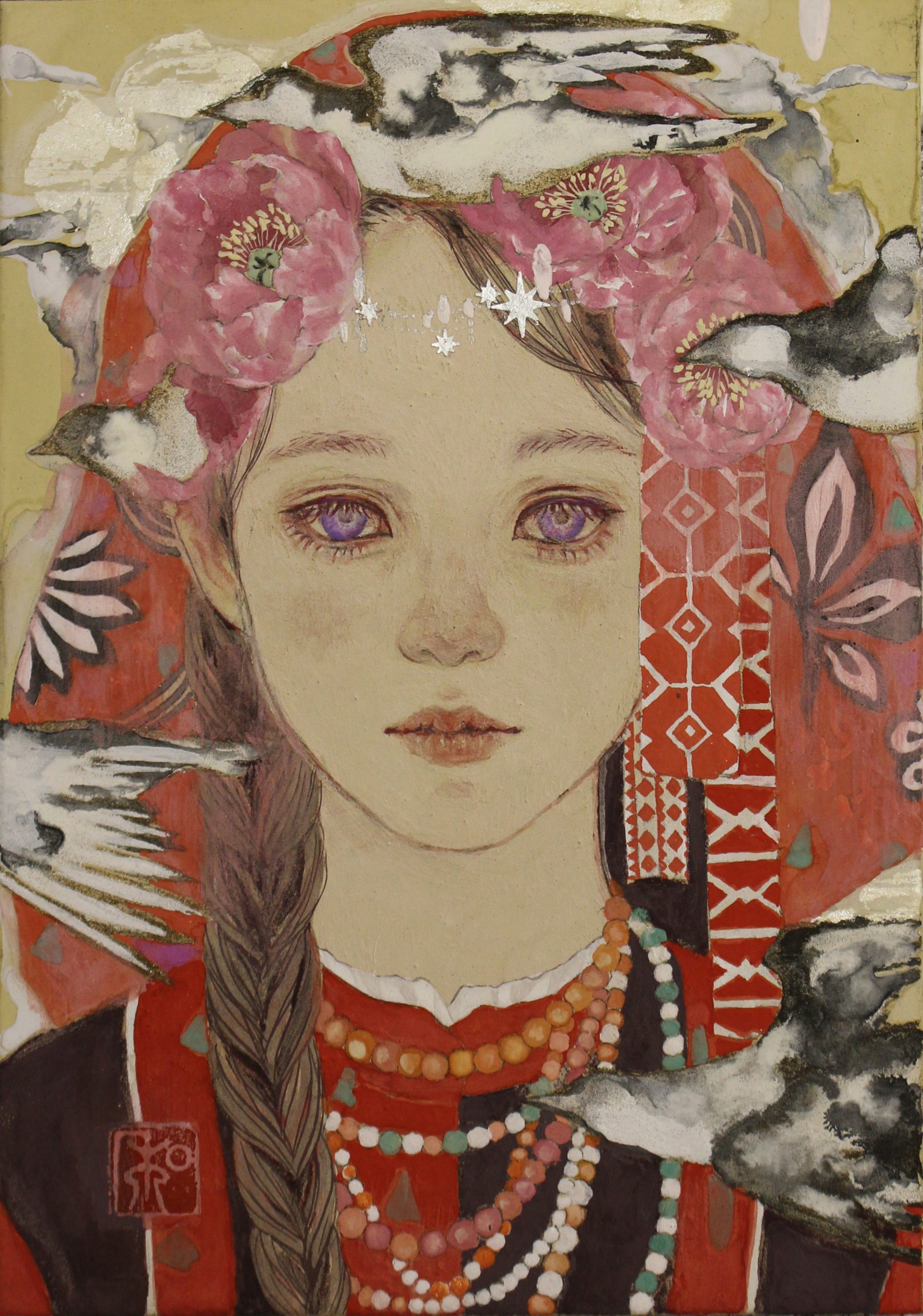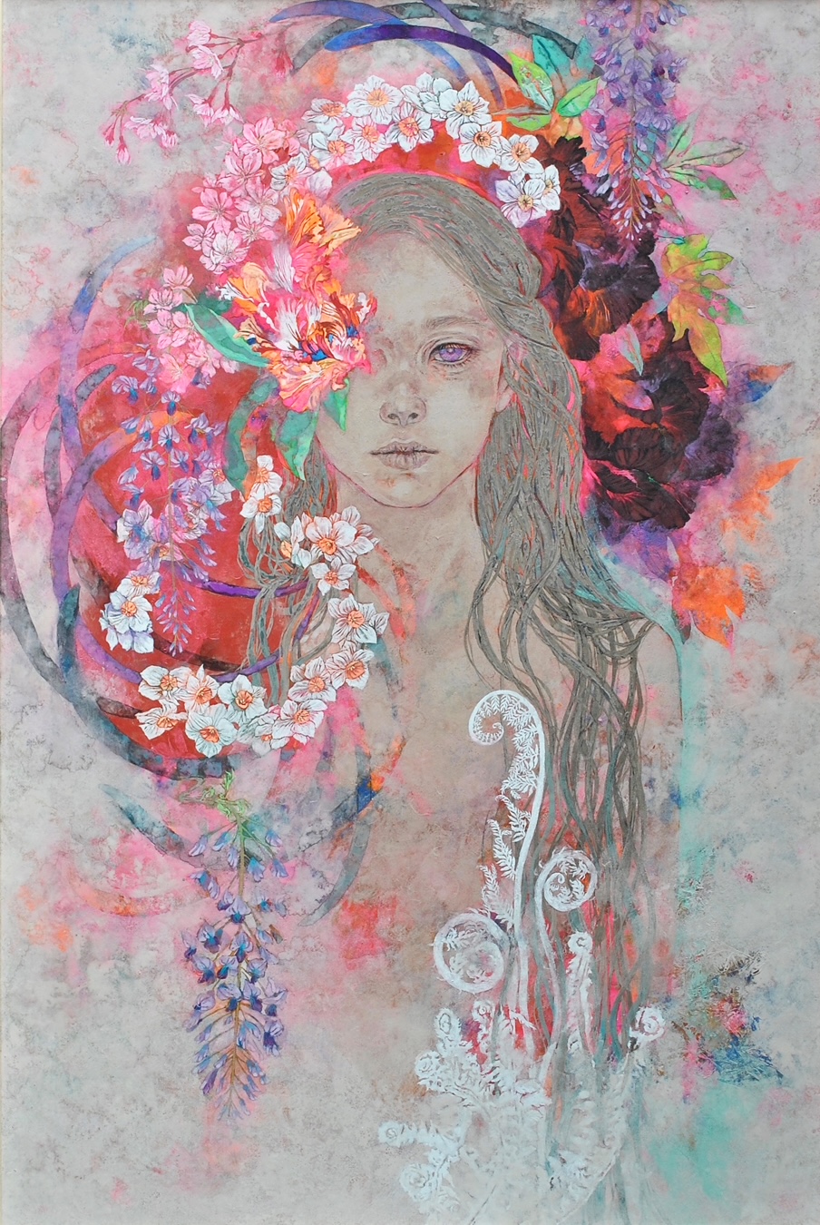 Wakako Sato is a contemporary Nihonga painter and educator based in Kumamoto, where she teaches at Sojo University. Her practice exemplifies how traditional Japanese painting techniques—particularly the use of mineral pigments, washi paper, and gold leaf—can be reimagined to explore contemporary themes of myth, psychology, and transformation. Sato’s paintings frequently feature hybrid figures, merging animal forms, symbolic flora, and dreamlike human presences into textured, otherworldly tableaux. Rather than aligning with the conceptual or ironic tendencies often seen in postmodern Japanese art, she engages a more symbolic and metaphysical register. In her work, nature is not merely depicted but personified, serving as a site of spiritual and psychological inquiry. Through this, Sato transforms Nihonga from a historical technique into a living medium—capable of articulating ambiguity, interiority, and the liminal spaces between self and other, myth and memory.